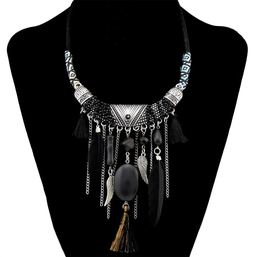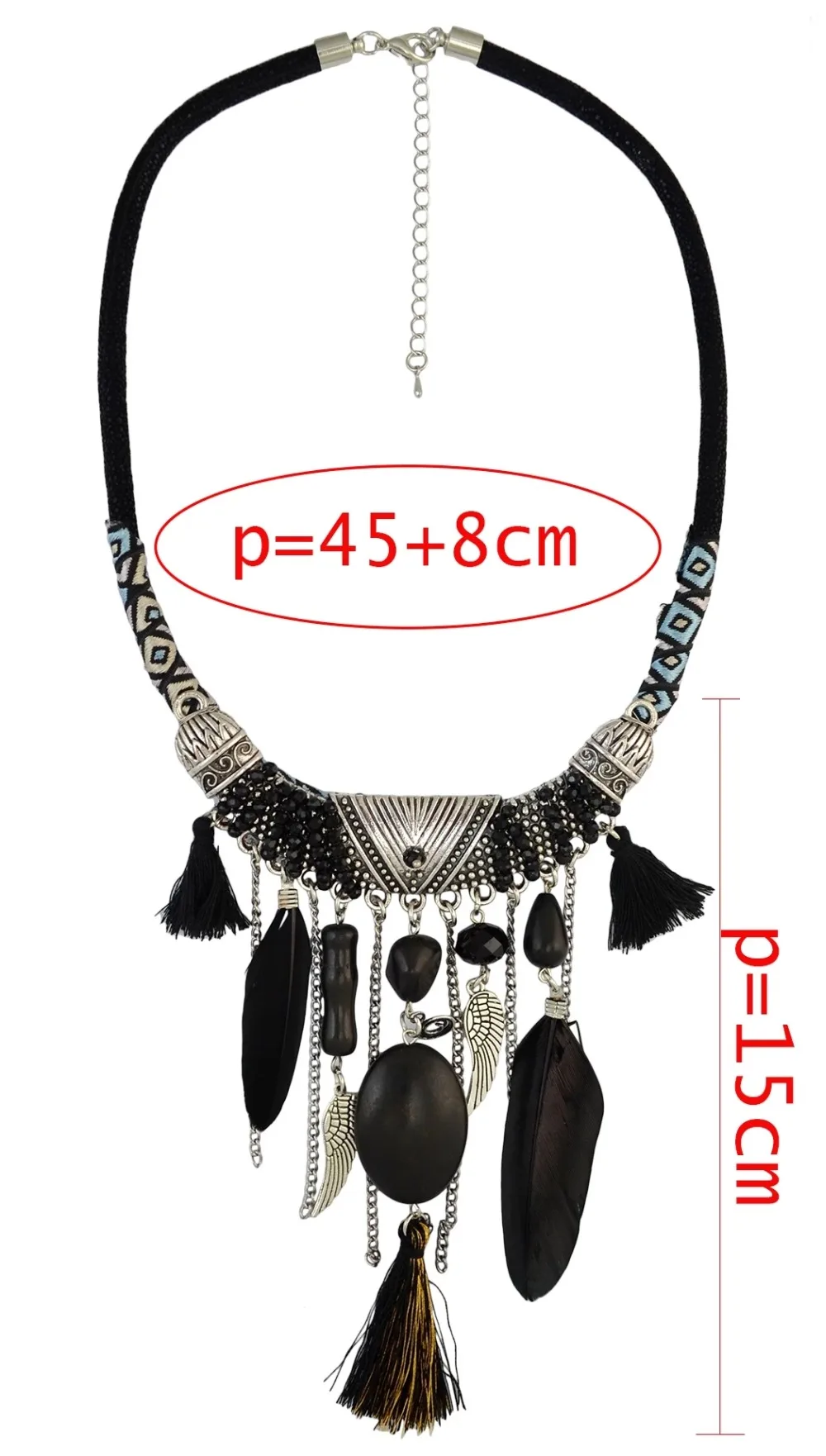 Bohemain Ethnic Fringed Feather Necklaces for Women Rope Woven Sweater Choker Collar Necklace Tribal Indian Party Jewelry