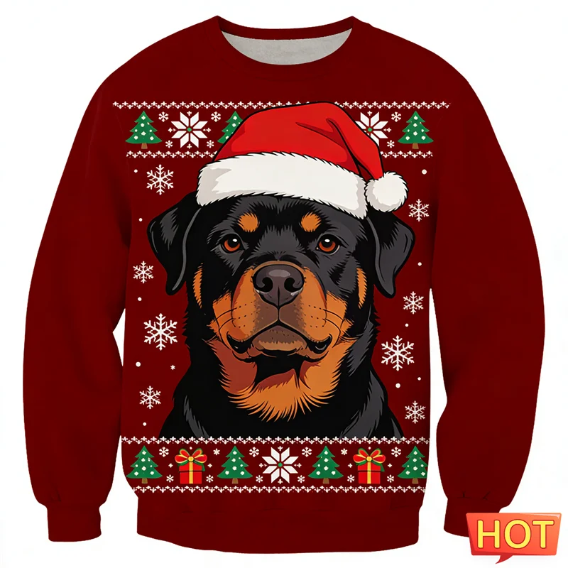 Funny Rottweiler Graphic Ugly Christmas Sweater Fashion Cute Dog 3D Printed Xmas Sweatshirts