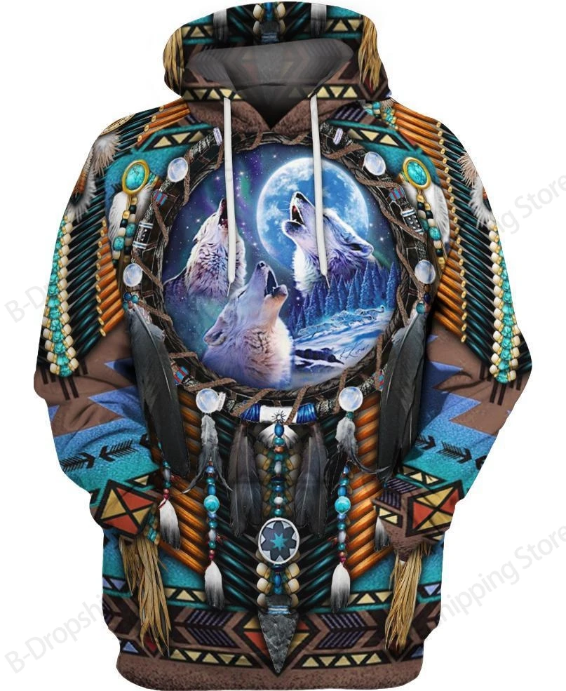 Native Wolf Pattern Culture 3d Print Hoodie Men Women Fashion Long Sleeve Hoodies