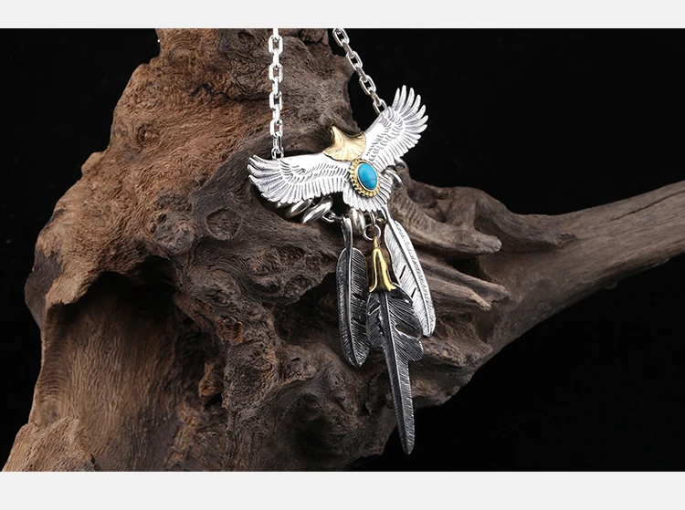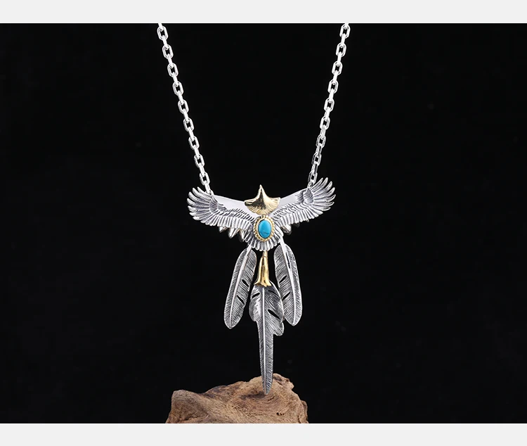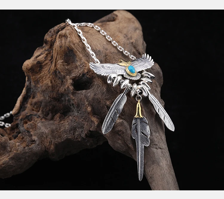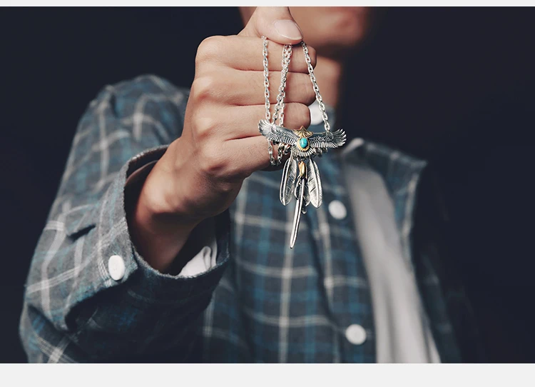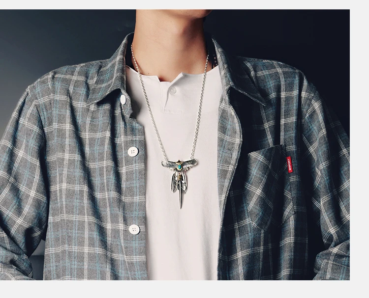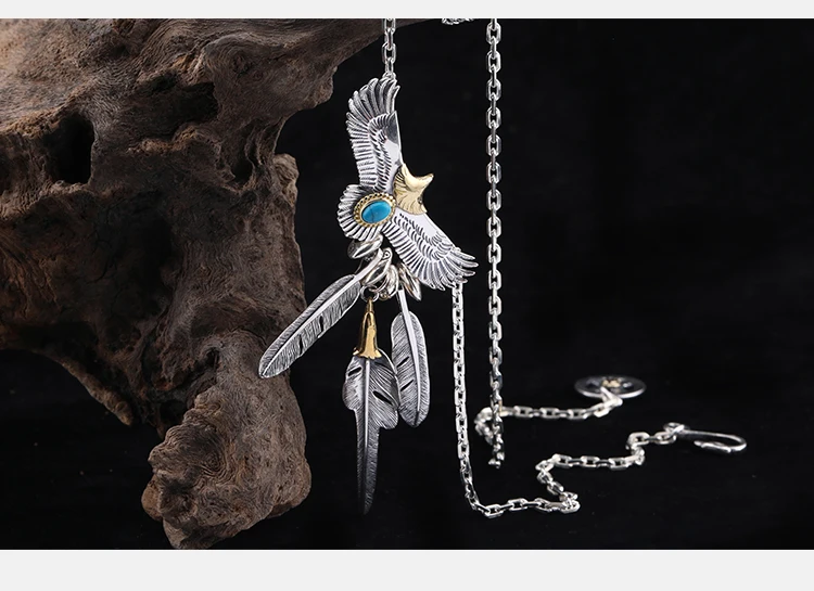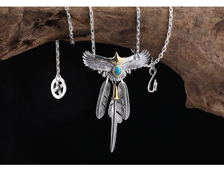 S925 Sterling Silver Feather Eagle Pendant Taijiao Chain Street Shoot Hip Hop Same Style Necklace Sweater Chain